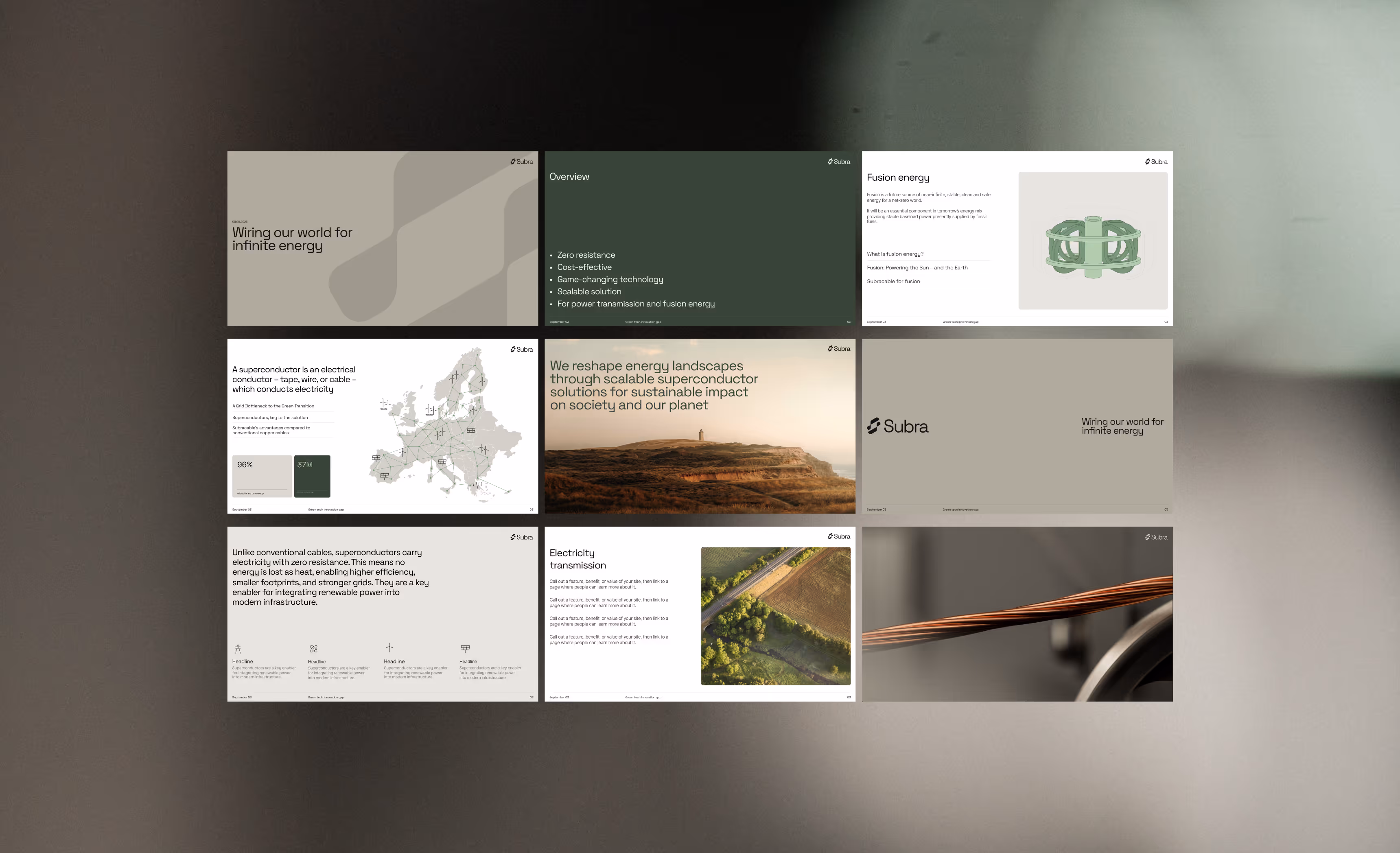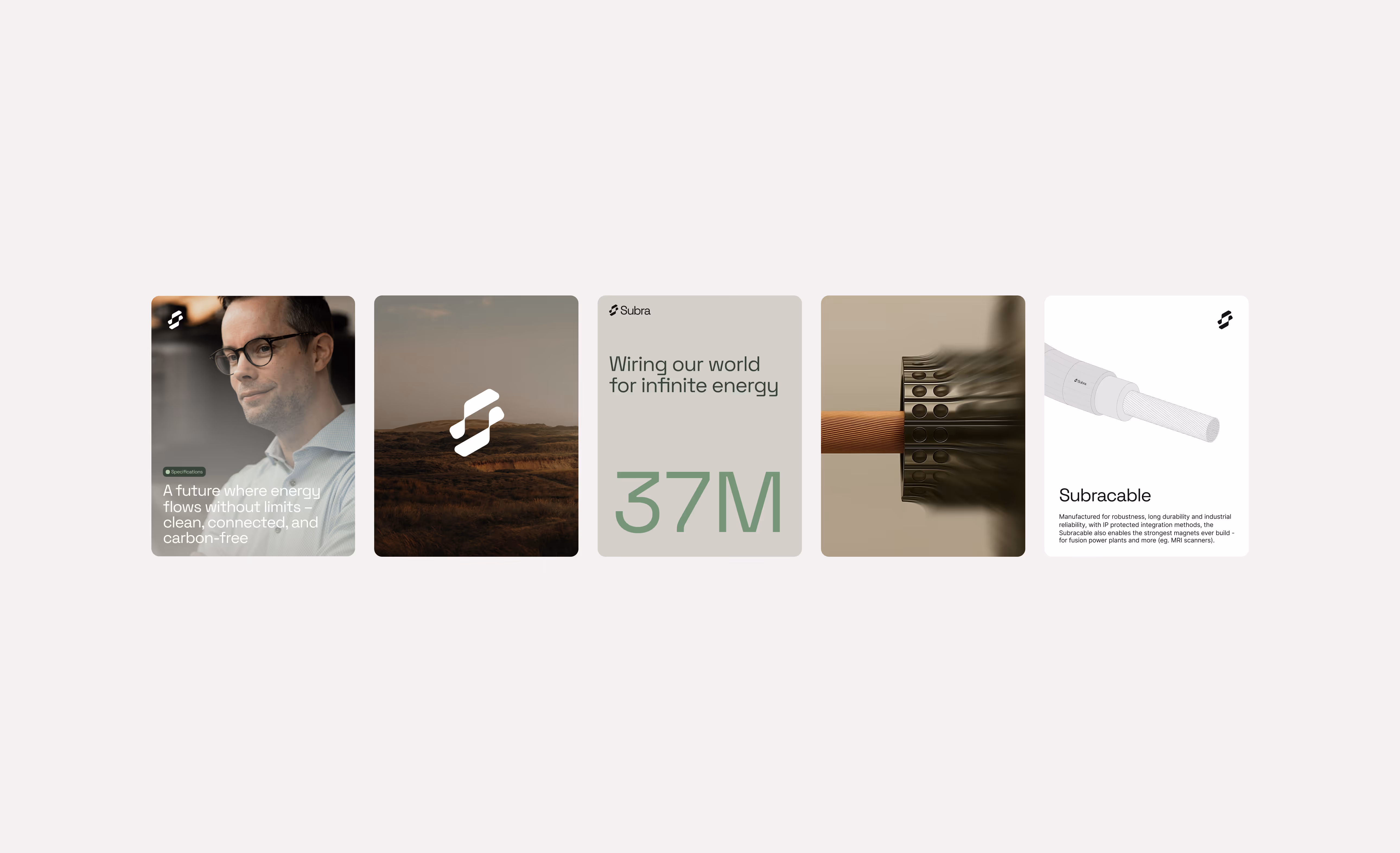 The logo draws inspiration from the Subracable, visualising the transformation from flat tape technology into bundled wires. This evolution symbolises flexibility, connectivity, and growth. The form subtly references the letter “S” for Subra, while also alluding to superconductivity, anchoring the identity in the company’s technological core.